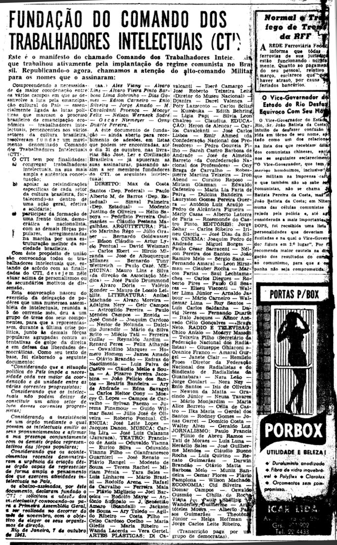 | Página de O Globo de 7 de abril de 64, sugerindo nomes para a tortura. |